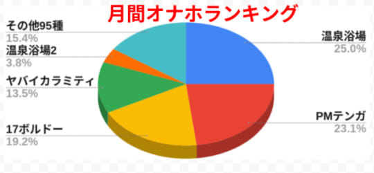 温泉欲情から始まり、プレミアムテンガに17ボルドーと続いています。ヤバイカラミティと温泉浴場2が上位にいたり、ヴァージンループがもっと上位だと思っていたので個人的には意外な結果でした。