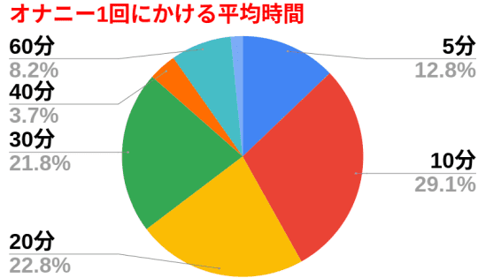 1番多かったのは10分で、93人でした!やはり空き時間などにサクッとヌキたい人が多いのでしょうね。次に多いのが20分・30分がほぼ同列で計120人程度です。5分くらいの人がもっと多いと思っていたので、個人的には意外な結果でした。