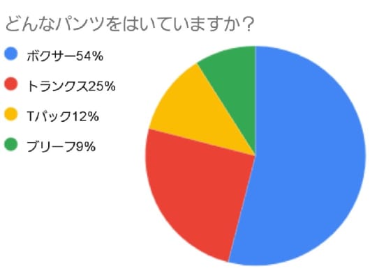 女性向け雑誌CanCamがTwitter上で男性を対象に行ったアンケートだと、圧倒的にボクサーパンツ利用者が多かったようです。
