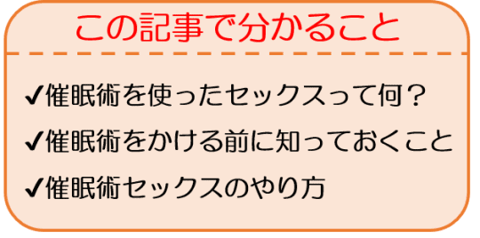 催眠術セックスを成功させるためにも、ポイントについてしっかりチェックしておいてください。