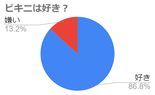ということで、関東圏に住む25歳〜35歳の男性130人を対象にビキニ好きかどうかを調べてみました。