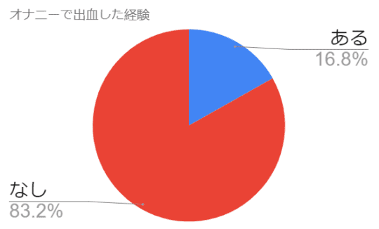 上記はラブサイトというメディアサイトが101名の女性を対象にアンケート調査を行った結果です。約2割程度の女性はオナニーで血が出たと回答しています。オナニーで盛り上がってしまい、つい力が入ってしまったようですね。