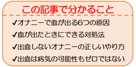 お医者さんに行こうか悩みましたが「オナニーで血が出ました」というのも恥ずかしいのと、出血が少量ですぐに止まったのでやめました。今回はオナニーで血が出るのは、何故なのかを追求したいと思います!