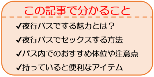 どハマり注意!夜行バス内セックスは背徳感マックス!バレずにヤる方法を紹介!