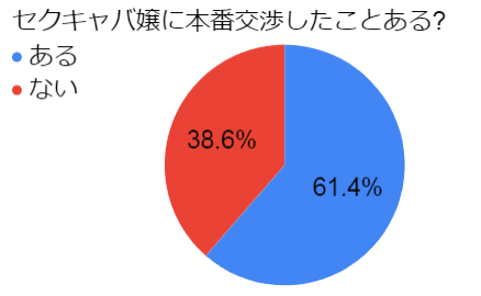 セクキャバで本番交渉をしたことがある男性がどのくらいいるのか、SNSを使い100人にアンケート調査を実施。