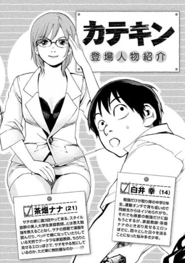 そんな多感な思春期の最中にある14歳の男子中学生の主人公「白井幸」が、家庭教師である「茶畑ナナ」の「エロさ」に振り回されてしまう!というのが『カテキン』なのです!