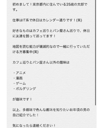 以下、私が出会い系監視中に思わず全部読んで笑ってしまったネタ集になります。こんな感じのプロフ文を作りましょう。