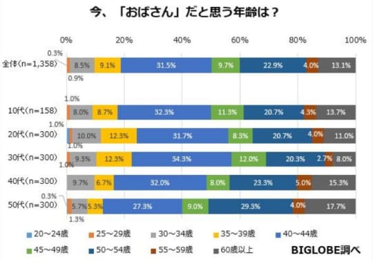 ほかのサイトの調査でもほぼ同様の結果で、もう少し細かく精査すると、やはり40歳がお姉さんとおばさんの分かれ目という結果でした。
