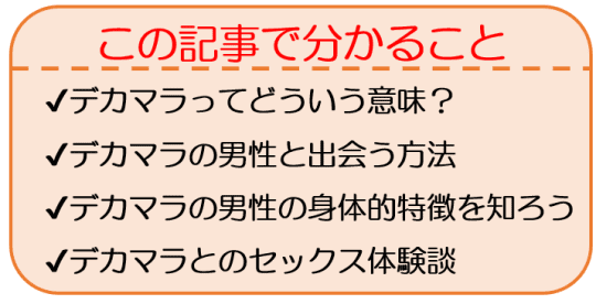 それではデカマラを見つけるために特徴をご紹介していきましょう。