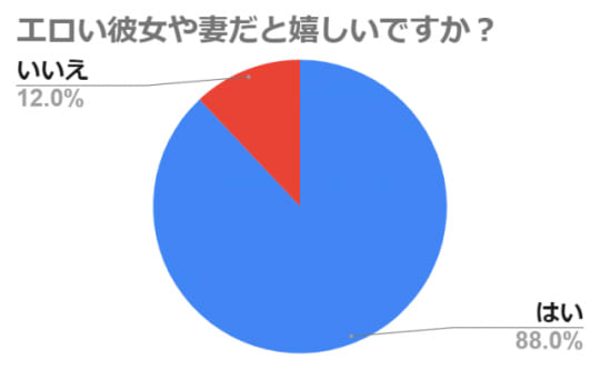 グラフを見るとわかるように彼女や妻がエロい女性だと嬉しいと答える男性が大半を占めています。彼女や妻がエロいことによって、日頃のセックスも飽き飽きすることがなくいつまでも抱いていたいと思うようです。