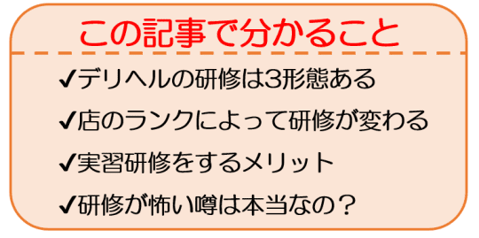 どんなお仕事にも研修があるので、デリヘルにもあるってだけなのですが研修の内容を聞くと「怖いな」って思う女の子が多いんです。