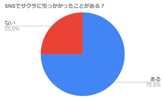 アダルトサイトがSNSをエロ目的で利用する男性200人に行ったアンケートによると、サクラに引っかかってしまったことがある男性はなんと全体の75%にも及びました!