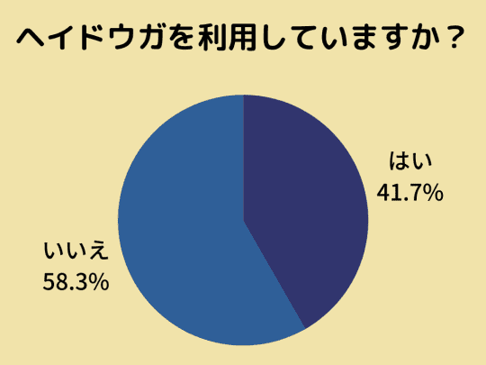 そこで今回SNSにて、20~40代男性100人に「ヘイドウガを利用していますか?」というアンケートを実施しました。
