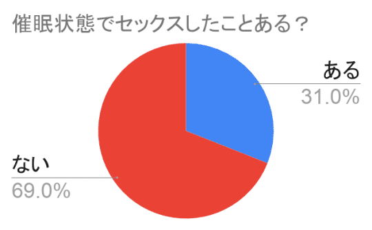 こちらの画像は、Twitterにて集まってくれた20~40代の女性100人に「催眠状態でセックスしたことある?」とアンケートを取ったときの結果をグラフに表したもの。