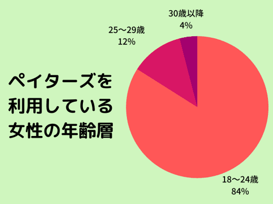 ペイターズは先ほどのグラフでもあるように、女性利用者の年齢層は「18~24歳が80%」と公式が発表しています!