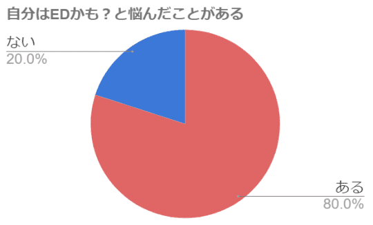 今回、風俗店に来て下さるお客様の30人に自分がEDか悩んだことがあるか聞いてみました。アンケートの結果8割の男性が1度は悩んだことがあると答え半分以上の人が30代~60代の方でした。