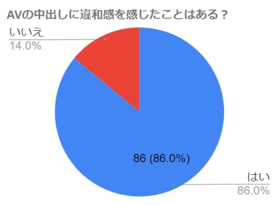 どうでしょうか?8割以上の男性がAVの中出しに違和感を感じているのです!皆さんも思いませんか?