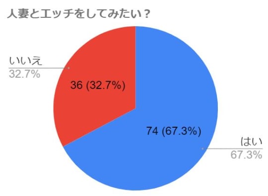 このグラフから分かることは、全体の6割以上の男性が人妻とエッチをしてみたいと思っていることが分かります。