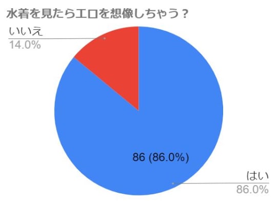 実に8割以上の男性が水着を見てエロいことを想像していることが分かります。