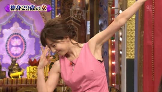 このテレビ出演中の「チラリズム」は、大きく開いた腕まわりから見える「ブラチラ」です!