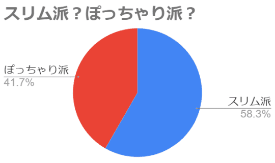 アンケートによるとスリム派6割、ぽっちゃり派4割という結果になりました。スリム派の方が多いものの、ぽっちゃり好きも意外と多いことが分かります。