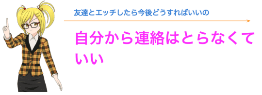 しつこつ連絡すると、「友達なんだから1回のセックスぐらいで勘違いしないで」と思われ、今後の友達関係にもひびが入るかもしれません。