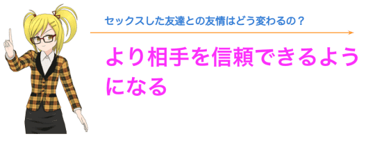友達とセックスをした後、より一層信頼関係が深まることもあります。