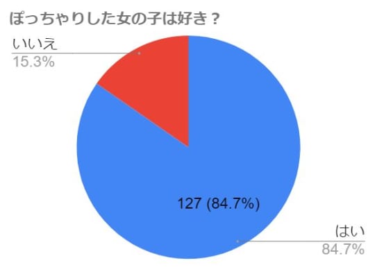 これによりますと、男性の8割以上の方がぽっちゃり女子のことが好きだということが分かります。