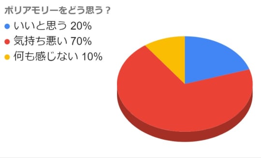 う~ん、私のようにポリアモリーを歓迎している人は少ないですね。反対にポリアモリーが気持ち悪いと感じている人が、70%もいますね。