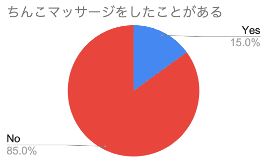 アダルト情報のウェブメディアで、20代から30代の男性50人にアンケートを取ったところ、ちんこマッサージをしたことがあると答えたのは、15%にとどまりました。
