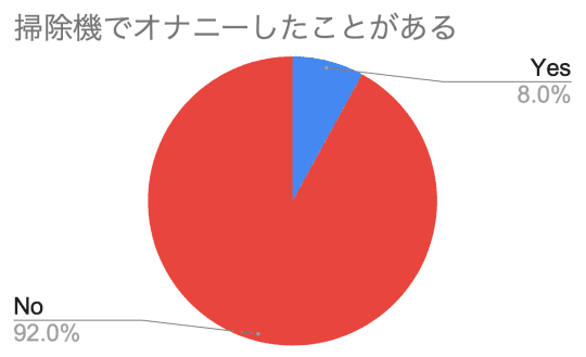 しかし、とあるSNSを使って20代から40代の男性50人にアンケートを取ったところ、掃除機を使ってオナニーしたことがあると答えたのは、8%に留まりました。