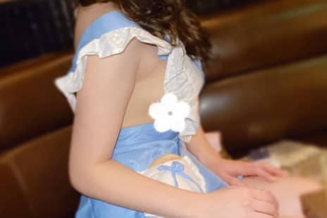 理由としては「胸とか大事な部分がうまく見えない状況が良い」。エプロンをしているので背中やわき腹は見えている状態です。