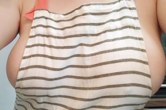 まずは横乳。裸エプロンでは横乳の人気がめちゃめちゃ高いです。どうしても横乳が出てしまいますがこれは巨乳の特権。