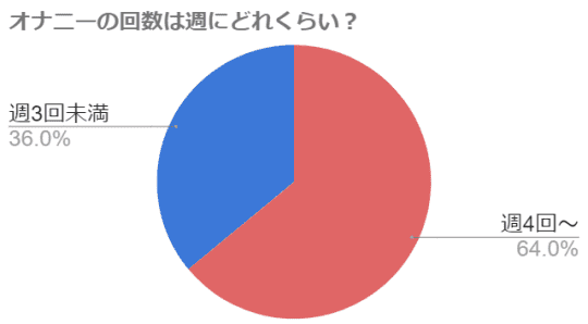 結果はご覧の通り6割の人が週に4回以上はオナニーをしていると答えてくれました。中には、ほぼ毎日してると答えた人も多く男女の比率は半々くらいでした。