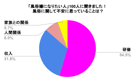 実際に調査してみると、風俗の研修に不安を持っている人は55%!なんと半分以上もいらっしゃるんです。確かに、セクハラ研修や店長とのセックスも噂される風俗の新人研修、不安になる気持ちも分かります、、、。