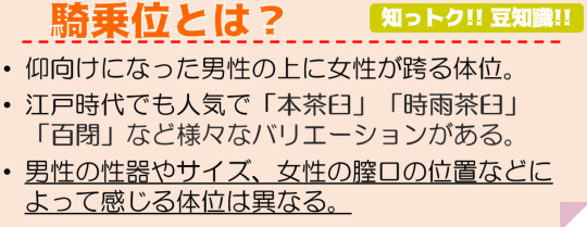 そして、そのポルチオをピンポイントで刺激できる体位が「騎乗位」なのです!
