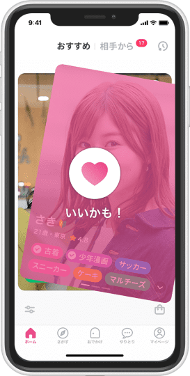 直感的にアプローチが出来るシステムがあり、顔がタイプなら即「いいかも」を押すだけでOK。