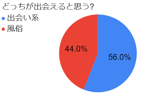 では、出会い系と風俗、ぶっちゃけどっちに出会いの期待ができるのか、当サイトオリジナルアンケートシステムを使い、ランダムに選んだ男性100人にアンケート。