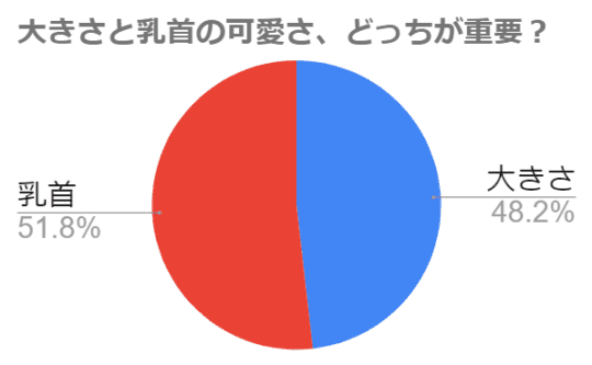 上のグラフからも分かるように、僅差ではあるもののおっぱいの大きさよりもかわいい乳首を重視している男性が多いんです!
