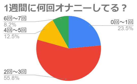 調査の結果、週に2〜3回オナニーをしている男性が多いことが分かりました。このアンケート結果と照らし合わせると、やはり僕はしこりすぎなんですね…(笑)