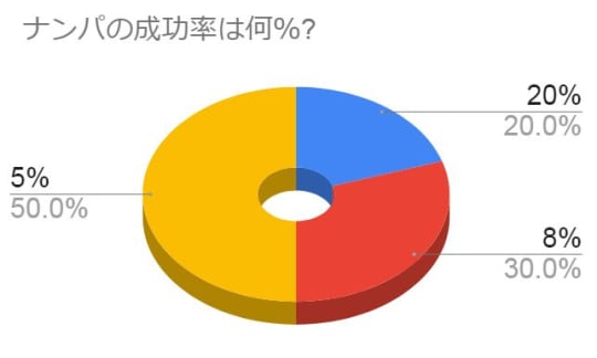 これは、遊び仲間でナンパを実践してる10人に、成功確率について緊急アンケートを実施してみました。