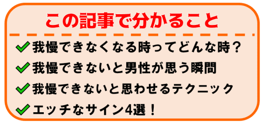 今回は男性に『エッチが我慢できない』と思わせる方法を紹介します♡