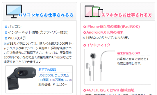 チャットレディのお仕事を始めるために必要な物は多くありません。 パソコンかスマホのどちらかと身分証明書をご提出頂ければお仕事を始められます。 誰でも気軽に始めることが出来るのが、チャットレディの良い所でもあります。 パソコンもしくは、スマホのどちらかを アナタのライフスタイルに合った環境をお選び下さい。