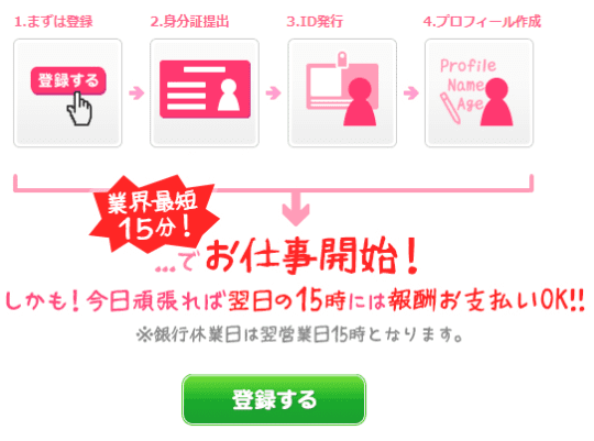 ライブでゴーゴーでは、チャットレディのお仕事は登録フォームから 必要事項を入力と身分証の提出だけで、最短15分でチャットレディのお仕事をすることが可能です。