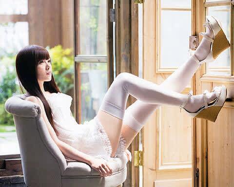 個人的に、白いタイツだとかストッキングだとかを履いた女性というものを、芸能人一般人問わず見た記憶がないのですが、そのことがさらに鮮烈な印象を与えてくるわけです!