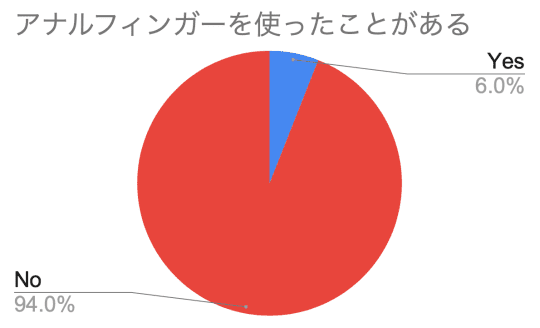 アナルフィンガーを使ったことがありますか?という問いに対して、「使ったことがある」と答えたのは、たったの6%でした。