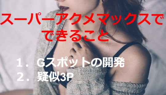 私もそうなのですが、セックスでは彼にGスポットを刺激してもらい、オナニーではスーパーアクメマックスでGスポットを刺激して開発するという使い方の人が沢山います。