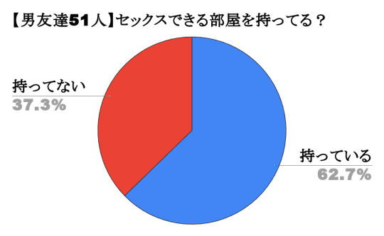 ちなみに、僕の男友達51人に「セックスできる部屋を持っている?」でリサーチ。