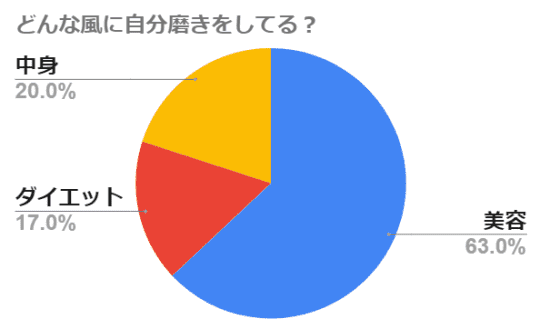 まず、1番多かったのは美容です。やはり外見が1番大事という事で、普段から化粧品や美容品にはかなり気を使っていると答えてくれる人が多かったです。