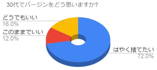 実に7割以上が「はやく捨てたい」と思ってる、つまりですね、ぶっといチンポにまんこを貫かれたい願望ありってことなんです(笑